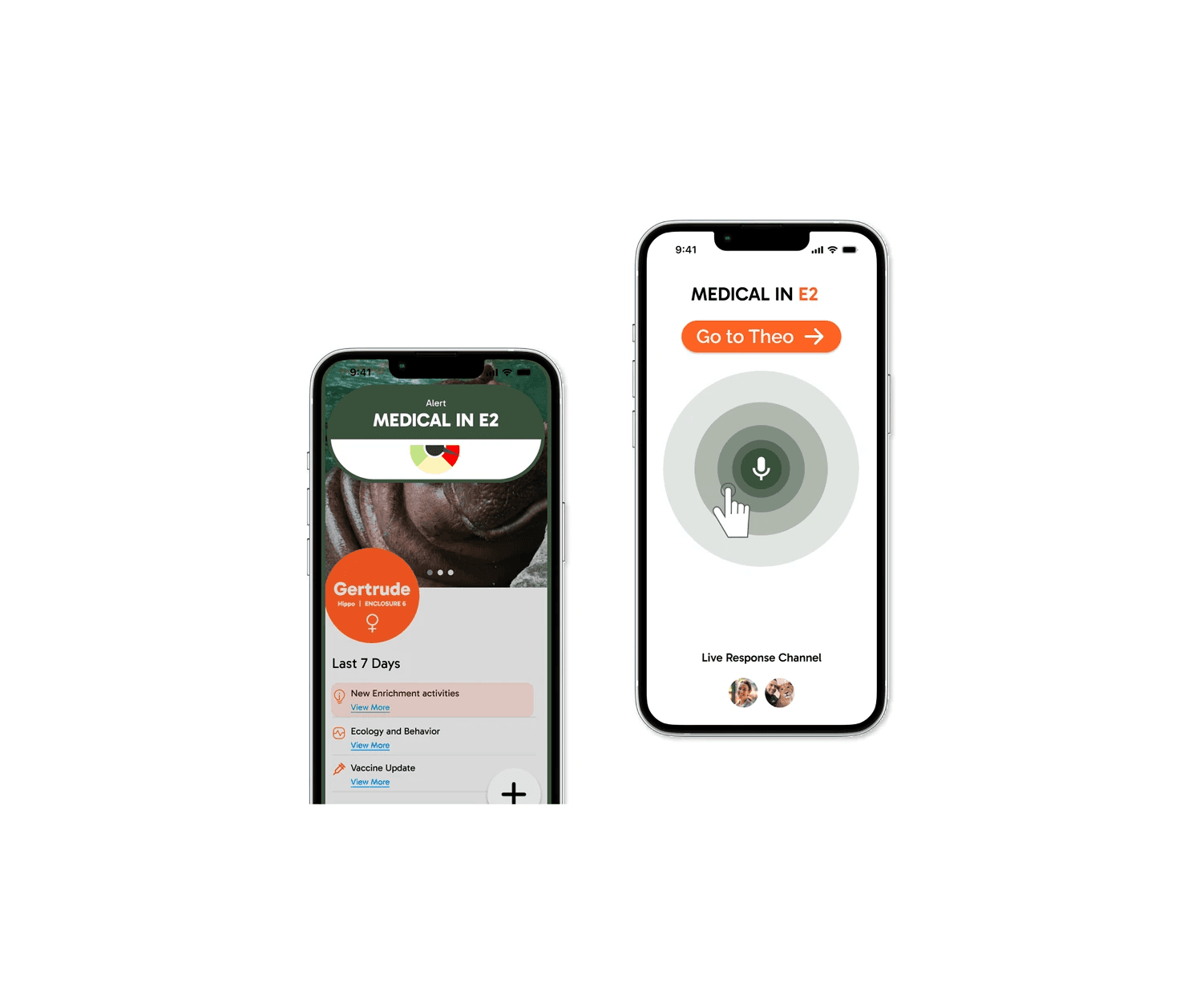 The interface is intentionally calm and durable. High contrast, simple layouts, nothing competing with the content. Voice input for logging observations without stopping work. Emergency alerts that cut through everything else. The goal was a tool that disappears into the workday rather than demanding attention from it.
